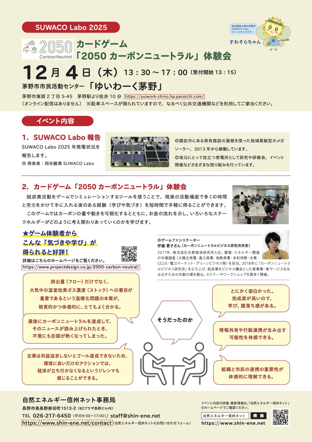 【12月4日・茅野】SUWACO Labo 2025 カードゲーム「2050 カーボンニュートラル」体験会